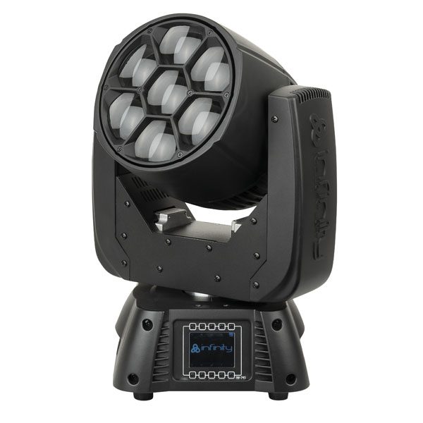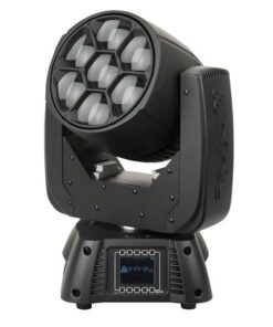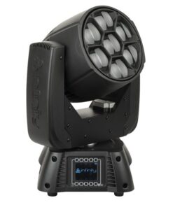 L’Infinity iW-741 è un alimentatore compatto dotato di 7 led Osram RGBW a 40 W. Motori appositamente selezionati offrono movimenti super rapidi e precisi. In combinazione con uno zoom motorizzato, può essere creato un fascio di 3,6° ultra nitido che cambia in un effetto wash a 60° tramite vari protocolli di controllo disponibili. I sette led O-Star producono colori molto brillanti e saturi e cambiando il PWM tramite DMX, il iW-741 è particolarmente adatto ad applicazioni per teatro o televisione.
