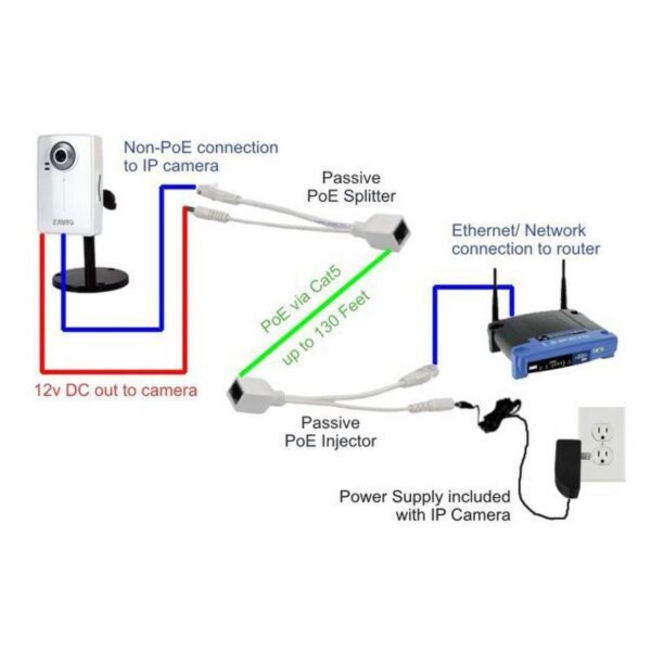 Permette di alimentare dispositivi utilizzando il segnale poe senza installare alimentatori sul dispositivo. Semplificando l’installazione e diminuendo i cavi in fase di installazione.Compatibile con alimentazione da 9 V a 57 VSpecifiche:• Splitter passivo per poe• Per alimentare dispositivi utilizzando il segnale poe senza installare cavi di alimentazione aggiuntivi. • Alimentazione in uscita supportata: 9-57 VC su RJ45 Pin 4/5 (+), Pin 7/8 (-)• Uscita: 800 mAh• Compatibile Cat 5E EIATIA 568 Ethernet 10/100 Mbps• Ingresso LAN RJ45 (Dati) (Pin 1,2&3,6)• Uscita: LAN RJ45 (Dati) (Pin 1,2&3,6) + Power (Pin 4,5&7,8)Caratteristiche:• Involucro in PBT (Plastica dura)• Dimensioni: • connettore RJ45 19 x 18,8 x 41,7 mm• Lunghezza Max: 210 mm• Connettore DC: 5,5 /2,1 x 12 mm• Cavo UTP 24 AWG• Temperatura di esercizio: – 20°C a 45°C• Temperatura di immagazzinaggio: da -40 a 70 gradi • Umidità di funzionamento: 10% a 80% di umidità relativa • Umidità di stoccaggio: 5% al 90% di umidità relativa• Colore: Bianco La confezione include: • Cavo splitter POE passivo IN• Cavo splitter POE passivo Out