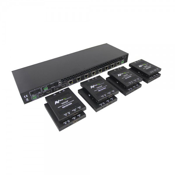 Kit composto da un AC-DA210-HDBT e 8 ricevitori AC-EX70-UHD-R