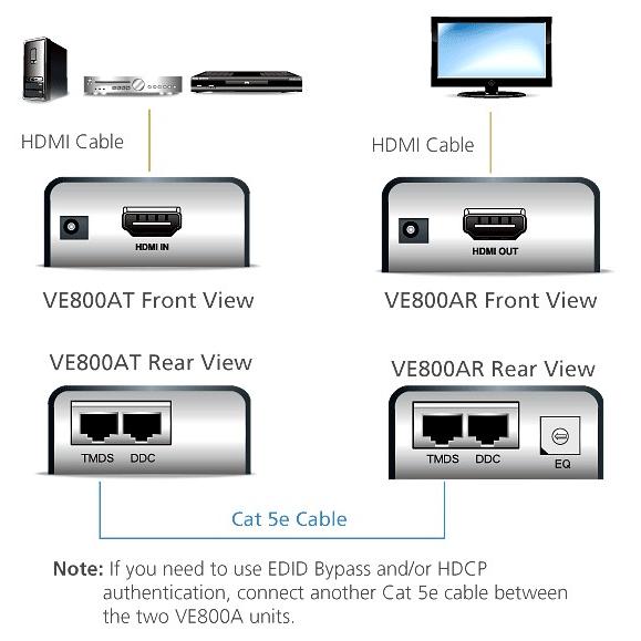 Kit Estensore HDMI fino a 60m su Cavo Cat.5E, VE800A