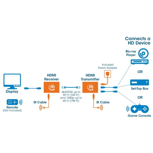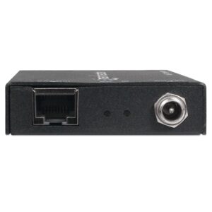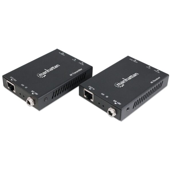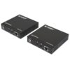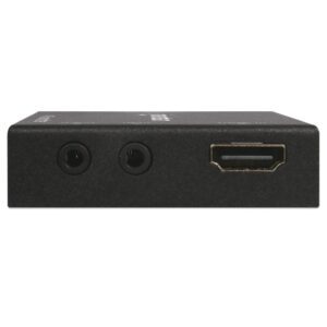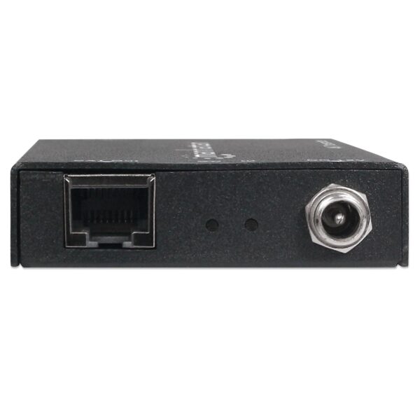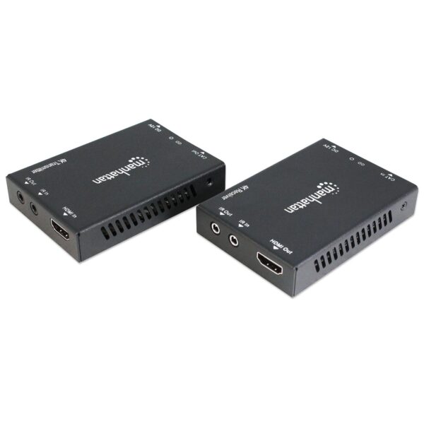 • Estende un segnale HDMI fino a 50 m da una sorgente HDMI a un monitor o un proiettore UHD utilizzando un cavo di rete • Supporta risoluzione 4K@30Hz fino a 50 m o 1080p fino a 60 m • Supporta una larghezza di banda fino a 340 MHz e 3.4 Gbps a canale (10.2 Gbps totali) per display 4K• Supporta formattazione audio non compressa LPCM 8 canali lossless e audio surround 7.1/5.1 • Offre cavi di trasmissione a banda larga e bidirezionale IR (Tx) e di ricezione (Rx) che favoriscono il controllo remoto della fonte del segnale o del display UHD• Supporta Power over Cable (PoC) — l’unità ricevente è alimentata tramite l’unità trasmittente e viceversa• Piena compatibiiltà allo standard HDCP per garantire una trasmissione protetta di contenuti in alta definizione e assicurare una ricezione di qualità• Plug and play – non richiede installazione o configurazione• Compatibile con videogiochi come PlayStation e Xbox, lettori Blu-ray, ricevitori digitale terrestre e satellitari e molto altro ancora • Contatti dorati per una lunga durata nel tempo• Per incrementare la distanza di trasmissione, utilizzare cavi HDMI da 15 m (vedi codice 323260) sia per il trasmettitore che per il ricevitore Standard e Certificazioni• HDCP 2.2• DVI 1.0• CTS 1.2• CE• FCC• RoHS2Informazioni generali• Cavo Cat6: 4K a 50 m • Cavo Cat6: 1080p a 60 m • Cavo Cat6: 720p a 80 m • Cavo Cat6: 480p a 100 m • Cavo Cat5e: 4K a 30 m • Cavo Cat5e: 1080p a 50 m • Cavo Cat5e: 720p a 70 m • Cavo Cat5e: 480p a 100 m • Alimentatore: 12 VDC / 1 A (cavo: 1.4 m)• Indicatore LED (on: connessione attiva; lampeggiamento: scarsa connessione/HDCP inattiva; off: nessuna connessione)• Baud rate fino a 115 KbpsConnessioni• Una femmina HDMI (trasmettitore/ricevitore)• Un RJ45 femmina (trasmettitore/ricevitore)• Un 12 VDC femmina per alimentazione (trasmettitore/ricevitore)• Due femmine IR da 3.5 mm (trasmettitore/ricevitore)Ingresso/Uscita segnale • Supporta EDID• Ingresso segnale video: 0.5 – 1.0 V p-p• Segnale DDC in entrata: 5V p-p (TTL)• Massimo single-link range: 3840x2160p a 30 Hz, 4096x2160p a 24 Hz e 4K• Uscita video: HDCP 2.2, DVI 1.0• Frequenza: 3.40 Gbps / 340 MHzRisoluzioni Video• TV a definizione standard, TV ad alta definizione,TV a definizione ultra elevata• SDTV/HDTV/UHDTV: 480i/576i/480p/576p/720p/1080i/1080p/4KInformazioni fisiche• Dimensioni: 115 x 65 x 17 mm• Peso: 0.6 kg• Alloggiamento: metalloCaratteristiche ambientali• Temperatura operativa: 0 – 40°C• Temperatura di stoccaggio: -20 – 60°C• Umidità operativa: 20 – 96%, senza condensaContenuto della confezione• Kit Extender HDMI over Ethernet 4K (ricevitore e trasmettitore) • Alimentatore• IR blaster e ricevitore (due unità ciascuno)• Manuale utente