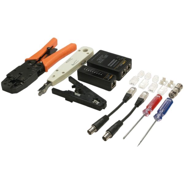 Il pratico set di strumenti di rete è costituito da una pinza a crimpare con taglierina, un inseritore per LSA, un tester per cavi e una strapperina universale con taglierina. Tutti gli utensili sono protetti da polvere e danni all’interno di una pratica borsa con cinturino in gomma.Tipologia attrezzi• Inseritore per LSA• Strapperina universale• Pinza crimpatrice multifunzione• Tester per cavi di rete RJ45, RJ11 / 12 e BNCCertificazioni• CE• RoHS• RAEEContenuto della confezione1 x Pinza a crimpare 1 x inseritore per LSA1 x Taglierina1 x Tester per cavi1 x Cacciavite a stella1 x Cacciavite punta piatta25 x plug RJ4525 x plug RJ11