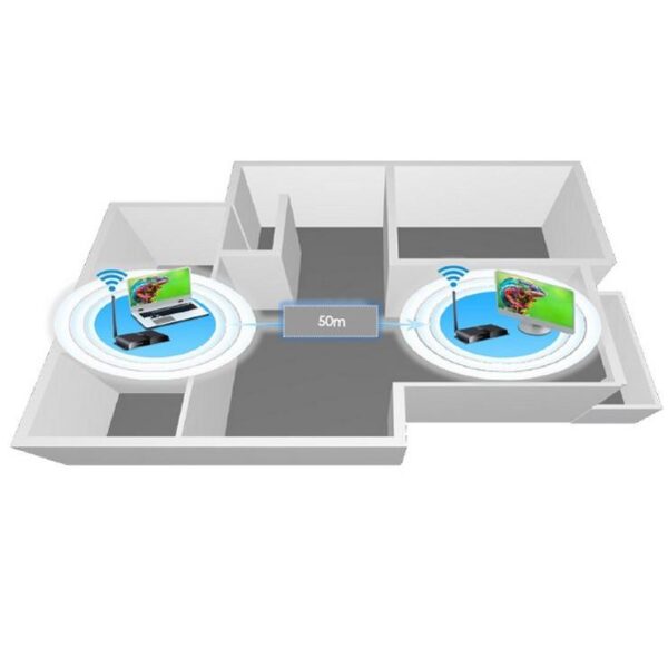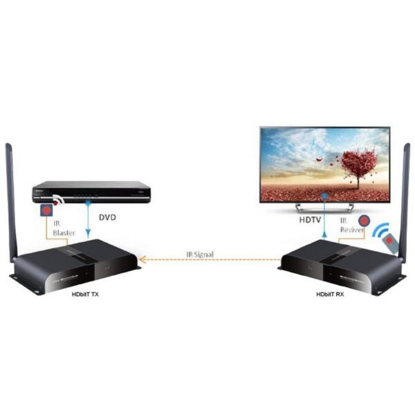 Kit wireless a lungo raggio HDbitT HDMI; estende audio e video in alta definizione a qualsiasi HDTV fino a 200 metri Supporta risoluzioni HD fino a 1080p. Permette di guardare qualsiasi dispositivo con connessioni HDMI su televisori HD in modalità wireless.Trasmette in modalità wireless il segnale da PC, decoder digitale terrestre, ricevitore satellitare, lettore Blu-ray / DVD, console di gioco o altri dispositivi HDMI al vostro sistema home theater ed elimina l’esigenza di cavi per il collegamento.E’ in grado di trasmettere senza fili al vostro HDTV o proiettore i segnali audio e video ad alta definizione 1080p fino a 200 metri di distanza. Questi extender wireless possono perdere il segnale se la trasmissione avviene attraverso pareti, vetri o altri ostacoli. Se ne consiglia l’installazione in un ambiente libero da barriere, affinché il segnale wireless possa mantenere la sua stabilità.Caratteristiche• Supporta la trasmissione del segnale HDMI a lungo raggio in modalità wireless da un trasmettitore fino a quattro ricevitori • Full HD 1080p trasmette fino a 200 metri di distanza (in assenza di muri e/o ostacoli)• Compatibilità completa con HDMI e HDCP• Con telecomando a raggi infrarossi per il controllo del dispositivo sorgente da remoto• Plug and Play, non richiede alcun software di installazioneHDbitTHDbitT è un protocollo di trasmissione per audio ad alta definizione o video via rete. Rispetto alla tecnologia tradizionale, offre prestazioni più stabili e maggiore nitidezza delle immagini.Oltre alla distanza di trasmissione e altri vantaggi significativi, può soddisfare facilmente la domanda di alta definizione nella trasmissione a lunga distanza, senza bisogno di alcun convertitore.Plug and PlayBasta collegare il trasmettitore alla porta HDMI del tuo dispositivo e il ricevitore all’HDTV e sei subito connesso! Non richiede alcuna installazione di software. Le possibilità di configurazione e l’utilizzo di questa soluzione sono infinite e non può di certo mancare nella moderna casa digitale!Il kit di trasmissione wireless consente di controllare il dispositivo multimediale sorgente in remoto grazie al supporto IR del ricevitore. Cambia canale, mette in pausa il filmato, regola il volume… supporta qualsiasi funzione. Basta puntare il proprio telecomando verso il ricevitore e premere il pulsante: è così facile!Specifiche tecniche• Supporta configurazione 1 trasmettitore a 4 ricevitori • Protocollo di trasmissione: HDbitT• Risoluzioni supportate: 480i @ 60Hz, 480p @ 60Hz, 576i @ 50Hz, 576p @ 50Hz, 720p @ 50 / 60Hz, 1080i @ 50 / 60Hz, 1080p @ 50 / 60Hz• Frequenza: 5GHZ • Compatibile HDCP 1.2• Distanza di trasmissione: 200 metri a 1080P 60Hz• Dispositivo remoto 20 ~ 60kHz IR• Supporta audio stereo L/R• Velocità di trasmissione: 10.2 Gbps • Temperatura operativa: 0 – 60 °C• Materiale: metallo• Colore: neroAlimentazione• Alimentatore DC 5V / 3A • Consumo: 15 WDimensioni (x2)• Larghezza: 195.27 mm• Profondità: 138.80 mm• Altezza: 30.8 mmCertificazioni• CE• FCC• RoHSContenuto della confezione• 1x Trasmettitore HDMI• 1x Ricevitore HDMI• 2x Cavo per sensore IR• 2x Alimentatore DC 5V/3A• 1x Manuale d’uso