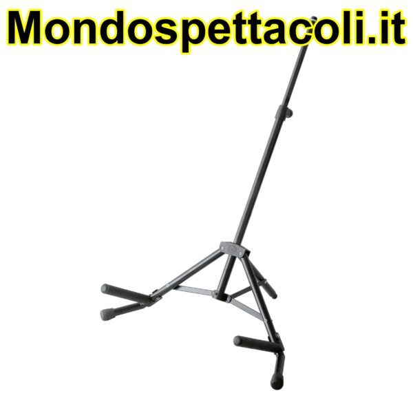 The amp stand can hold monitors, amps or other equipment to a max. weight of 35 kg without a problem. The angled front legs have significantly improved the stand’s stability and strength. The low centre of gravity ensures even larger amps are securely displayed. The fine adjustment on the supporting leg allows a tilt between 15_ and 28_. A microphone can be attached to the telescopic tube using a boom arm with a thread of either 3/8″ or 5/8″. Folds compactly.