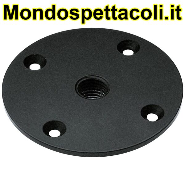 Zinc die-cast plate. Attachable to speakers. Diameter 105 mm. Four 6.5 mm holes. May be used with distance rods with M20 bolt.
