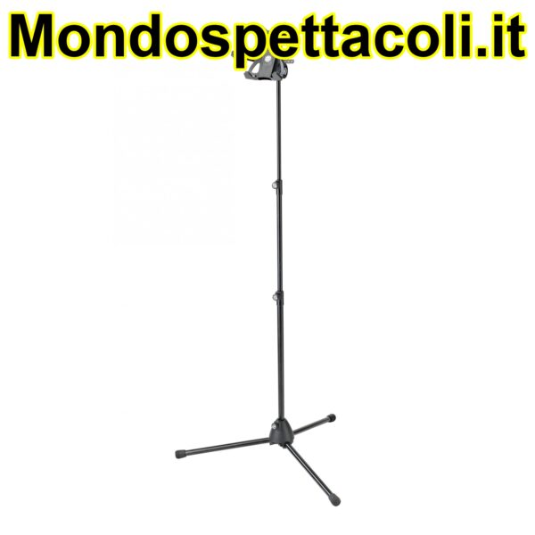 The combination of the stand and the tablet PC Holder supports you on stage, at home or in the studio. The unique clamp mechanism holds all common Tablet PC models such as iPad, iPad mini, Amazon Kindle, Amazon Fire, Samsung Galaxy Tab, Google Nexus, Asus Transformer or Microsoft Surface in size from 120 to 220 mm safe and secure. The holder is particularly suitable for the use of tablets with protective shields or cases. Thanks to a tension spring clamp a tablet can be attached and removed from the holder in a snap. The universal gripping device with integrated moss rubber guarantees a secure hold and eliminates unwanted vibration sounds. The additional adjustable bracket covered in felt and rubber caps provides additional safety when setting the tablet holder in the portrait format position, ensuring that the tablet PC does not dislodge from the holder even in the toughest of stage environments. The clamp grips are adjustable, ensuring that one can easily access the functions of the individual devices. The Tablet PC can be switched from the portrait to the landscape position and vice versa without slipping. The two-piece rod combination can be adjusted to any height between 700 and 1550 mm. The stand folds to a small and compact size for an easy transport.