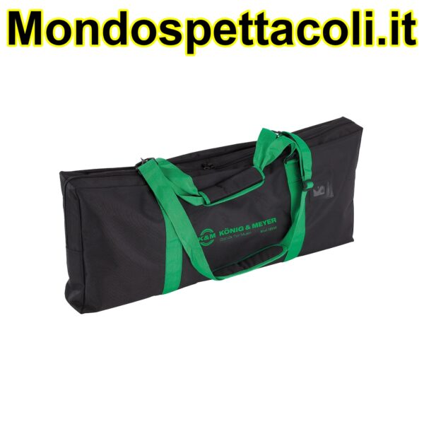 Convenient carrying case for table-style keyboard stand 18950. Tearproof nylon material, water-resistant. The case comes with padded handles and an adjustable shoulder strap. Plastic rubber feet protect the bottom of the case.