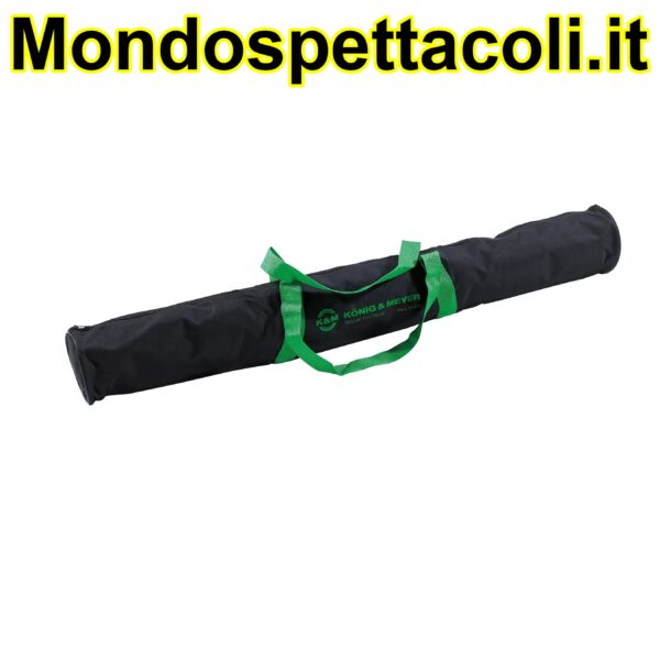 Designed to carry 2 K&M microphone stands. Made of waterproof nylon. Black with screenprinted logo. Two inside compartments with zipper and sturdy handles.
