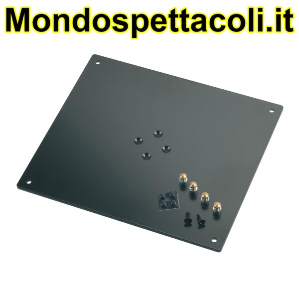 Bearing plate for monitors, suitable for the design monitor stand 26795. Available in three different sizes. Includes 4 spikes and 4 rubber knobs.