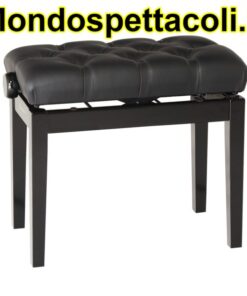 Piano bench wooden-frame. Solid European beech wood, varnished with four coats of polyester. Stable legs with non-slip rubber end-caps. Dual crossbar mechanism for easy and precise height adjustment. The piano bench ships flat and is easy to assemble.