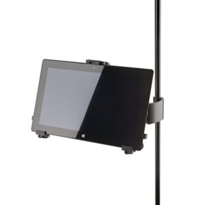 Supporto universale da asta per Tablet PC Fissaggio su asta microfonica o tubo fino a 30 mm Altezza: da 222 a 334 mm – Larghezza: 128 a 232 mm Angolo rotazione: 0-90° – Peso: 0,7 kg