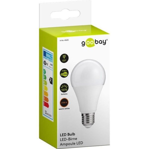 Lampadina LED globo dai formidabili vantaggi: elevata efficienza, bassa generazione di calore, basso consumo di corrente, lunga durata.Specifiche tecniche• Potenza e Classe energetica: 11W, classe A+• Attacco: E27• Flusso luminoso: 1070lm• Angolo di illuminazione: 220°• Temperatura colore: 2700K (bianco caldo)• Indice di resa cromatica: 80Ra• Durata: 25000 ore• Cicli di accensione/spegnimento: 12500• Fattore di potenza: 0,5• Tempo di accensione: 0,1s (istantaneo)• Compatibile Dimmer: No• Diametro: 6,0 cm• Altezza: 12,0 cm• Profondità: 6,0 cm
