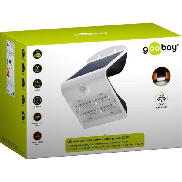 Lampada LED Solare a Muro 3,2W IP65 Sensore di Movimento Bianco