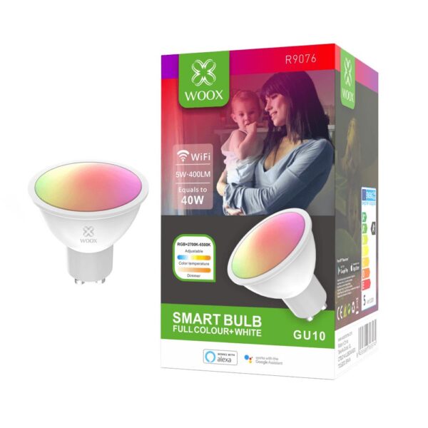 Usando il Wi-Fi, è possibile controllare la lampadina IC-WO5077 senza bisogno di un hub o hardware aggiuntivo. La Smart Bulb si installa facilmente come una lampadina standard e si connette al Wi-Fi domestico in pochissimo tempo tramite l app gratuita Woox Home. L app consente anche di gestire le luci tramite lo smartphone o tablet, inclusa la regolazione della luminosità, l impostazione di programmi e scene e il rilevamento dell energia utilizzata.