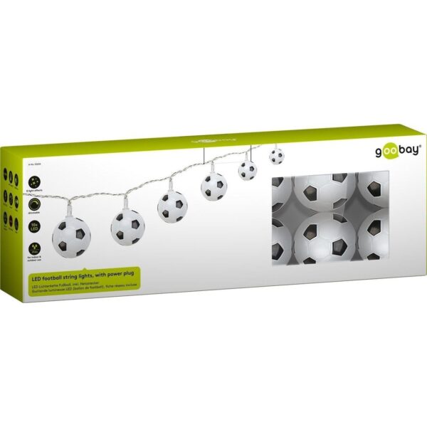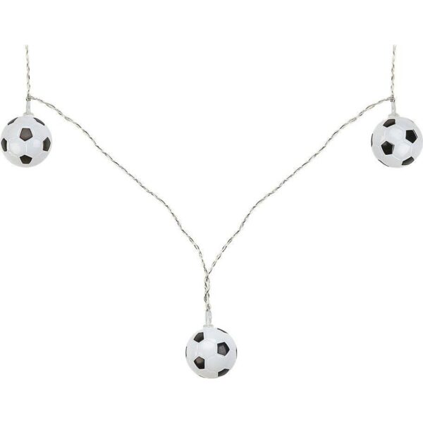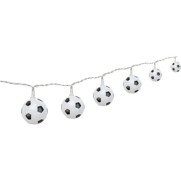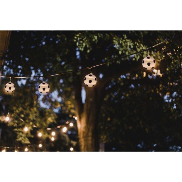 • Luci a corda con 10 lanterne a LED bianche calde (Ø 5 cm ciascuna) a forma di pallone da calcio• 8 diverse combinazioni di luci ad intermittenza: combinazione / ondulato / luce sequenziale / oscuramento alternato e lampeggiante / lampeggiante / lento sbiadimento / scintillio / luce fissa• Adatto per uso interno ed esterno (IP44)• Con spina di alimentazione • Cavo di alimentazione: in grado di coprire una linea di ca. 2,5 m; lunghezza totale: ca. 5,2 m• Lanterne distanziate di 30 cm l’una dall’altraSpecifiche tecniche• Diodo luminoso a emissione luminosa (LED)• Colore luminoso bianco caldo• Temperatura di colore 3000 K• Assorbimento di potenza 0,45 W• Corrisponde ad una lampadina da 1 W• Dimmerabilità regolabile• Flusso luminoso 5 lm• Resa leggera 11 lm/W• Indice di resa cromatica 60 Ra• Consumo energetico ponderato 0,5 kWh / 1.000 h• Tensione di esercizio 230 V (AC)• Uscita, min. amperaggio 0,3 A• Classe di efficienza energetica A• Grado di protezione IP44• Durata di servizio generale 10.000 ore• Numero di cicli di commutazione 10.000 • Materiale PP, PVCCertificazioni• CE• RAEECaratteristiche ambientali• Temperatura di esercizio da -30 °C• Temperatura operativa fino a 45 °C