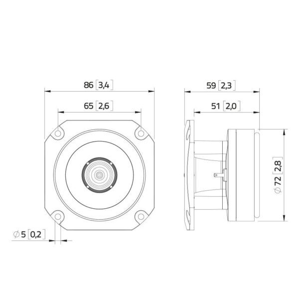 20 W AES, 8 ohms, 106 dB, 2500-18000 Hz