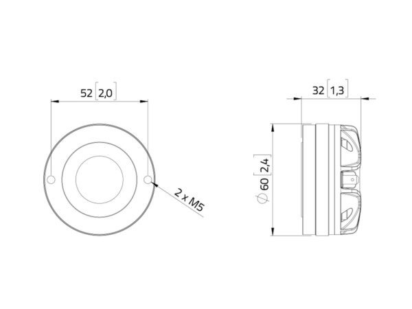 25 W AES, 16 ohms, 107 dB, 1000 – 18000 Hz