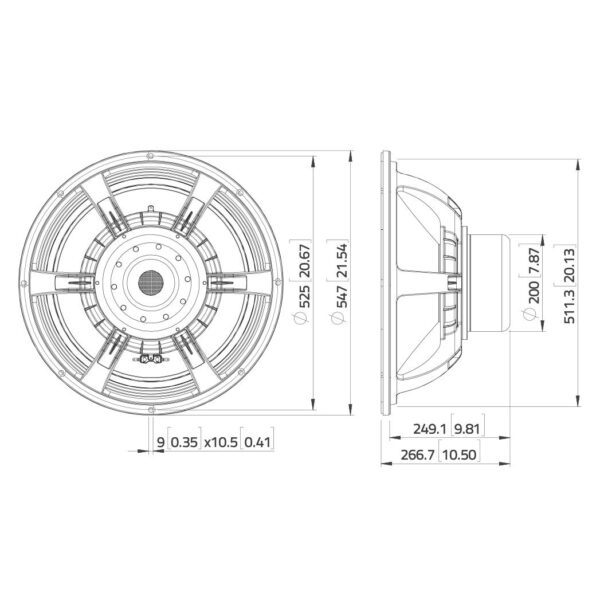 | Speaker: | Woofer (21″) approx. 53 cm with neodymium magnet Voice coil woofer in/out wound (7″) approx. 18 cm |