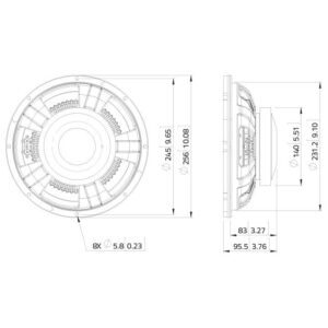 | Speaker: | Woofer (10″) approx. 25 cm with ferrit magnet Basket material: Steel Voice coil lows (2.5″) approx. 6.35 cm |