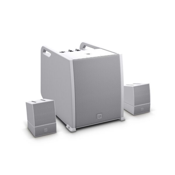 I due satelliti sono utilizzati con adattatore SmartLink®. Gli elementi, di soli 12 x 12 x 12 cm, si avvalgono della tecnologia WaveAhead® di LD Systems, di un driver 4″ e di tre driver 1″ che assicurano una riproduzione coerente ed estremamente dettagliata, con acuti potenti e dinamici.