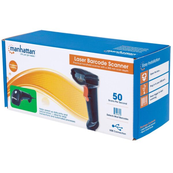 • Aiuta l’immissione dei dati di velocità, riduce gli errori e migliorare l’efficienza; ideale per le operazioni di vendita al dettaglio e dei processi automatizzati• Keyboard Wedge Decoder visualizza i dati come se direttamente inseriti dalla tastiera• Lettore di codice a barre con largo campo di scansione offre veloce, preciso legge fino a 50 scansioni al secondo fino a 300 mm• Rileva la maggior parte dei simboli compreso UPC, EAN, barcode 1D, GS1 DataBar Family e molto altro ancora• Interfaccia permutabile per integrarsi con la maggior parte dei PC• Facile da installare e da usare, non richiede software o uno speciale tirocinio• Grado di protezione IP42Informazioni generali• Supporta character editing e funzione ISP• Sorgente di luce: laser rosso 650 +/- 10 nm• Scanner range: fino a 300 mm @ 20 mil / 0.5 mm, PCS 90%, Code39• Risoluzione: 5 mil / 0.127 mm @ PCS 0.9, Code39• Conferma di lettura: segnale acustico e LED• Luce ambiente: 5,000 lux massima (luce solare)• Velocità di scansione: 50 scansioni/ secondo• Modalita’ di lettura automatica• Facile selezione della modalita’ di lettura automatica o manuale tramite doppio click sul grilletto• Interfaccia: USB• Interruttore: grillettoCodici supportati• UPC/EAN/JAN, Code 39, Full ASCII, Code 11, Matrix 25, Code 128, Code 93, Interleave 25, Industrial 25, Codabar/NW7, Telepen, MSI/PLESSEY, China Postage, Code 32/Italian Pharmacy, GS1 DataBar Omnidirectional & Stacked, GS1 DataBar Limited, GS1 DataBar Expanded & Stacked, Code 26, LCD25Fisiche• Dimensioni: 71.1 x 62.6 x 169.3 mm (W x H x L)• Peso: 123 g (4.35 oz.)• Lunghezza del cavo: 1.5 m• Temperatura d’esercizio: 0 – 50°C• Temperatura di stoccaggio: -20 – 70˚C• Umidita’ relativa: 20 – 95%• Alloggiamento: ABS e gommaInformazioni elettriche• Voltaggio: DC +5 V +/- 5%• Consumo: 65mAStandard e certificazioni• FCC• CE• USBContenuto della confezione• Lettore Laser Barcode Professionale• Guida veloce d’installazione