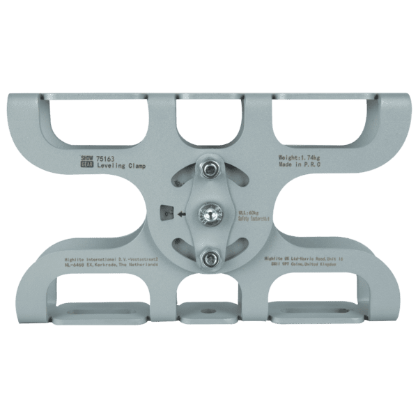 Il Levelling Clamp di Showgear è una staffa che permette di appendere gli apparecchi in posizione diritta quando il truss o un’altra struttura di supporto è inclinata. Il Levelling Clamp compensa angoli fino a 45°. È particolarmente utile per sospendere teste mobili, perché può essere molto difficile controllare ampiezza e angolo di inclinazione dell’apparecchio se non sono posizionate correttamente. Con il Levelling Clamp puoi ancora progettare il tuo palco in modo che i truss siano sospesi ad angolo e le apparecchiature siano comunque sospese dritte.
