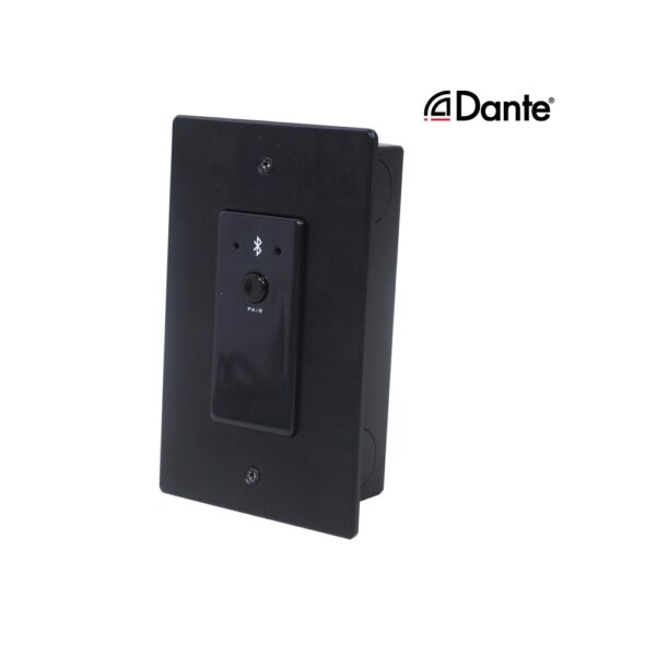 Pannello a parete 2 canali per la conversione tra Bluetooth e segnale protocollo Dante, ottenendo una trasmissione stereo bidirezionale.