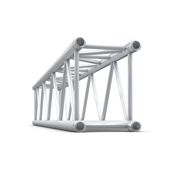Questo traliccio rettangolare combina la forza del traliccio Pro-40 Quatro ma fa risparmiare il 25% di spazio in più e ha migliori possibilità di rigging. La fettuccia diagonale parallela nella parte superiore consente un elevato carico laterale. I blocchi angolari Multicube consentono il collegamento verticale di tutti i tralicci Pro-30 Quatro. Il traliccio Trio, FT30, può essere inserito in quanto il traliccio Pro-35 ha una fettuccia parallela. Le bretelle inferiori sono di 48 mm, che garantiscono la facilità di installazione degli apparecchi di illuminazione grazie alla compatibilità con i morsetti degli apparecchi di illuminazione. E il traliccio FQ35 ha un facile montaggio dei perni grazie alla posizione a 90° dei fori dei perni a terra.
