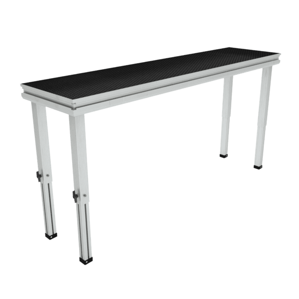 Showgear Mammoth Dex Slim è una pedana da palcoscenico leggera con una capacità di carico di 500 kg/m². È costruita in alluminio e compensato di betulla impermeabile da 12 mm. Il telaio è saldato per garantire una maggiore resistenza, il che la rende una soluzione leggera, durevole e conveniente. Gli angoli rinforzati e una speciale vite di bloccaggio garantiscono maggiore stabilità e compatibilità con le gambe quadrate e rotonde. Una trave trasversale in alluminio fornisce ulteriore resistenza e rigidità alla struttura del ponte. Il ponte è compatibile con il Mammoth DEX Regular e tutti i relativi accessori.