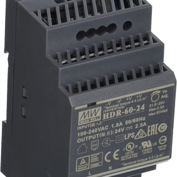Mean Well HDR-60-24 Trasformatore Rotaia Industriale 24V 60W Barra Guida DIN Rail Power Supply Universale