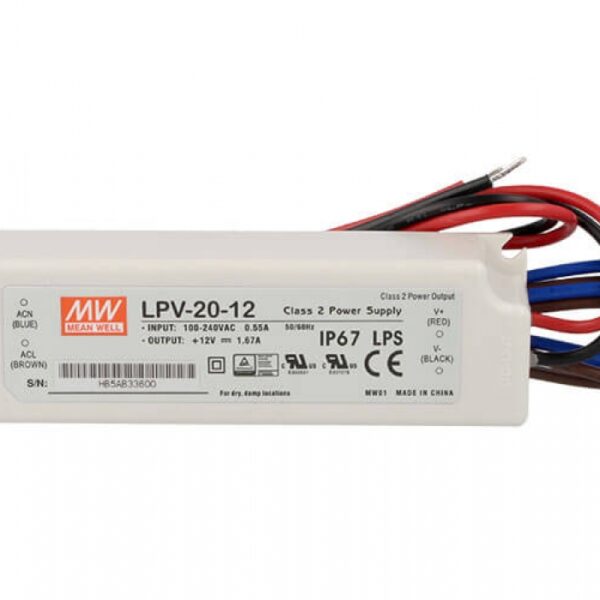 Mean Well LPV-20-12 Alimentatore Trasformatore CV 12V 20W 1,67A IP67