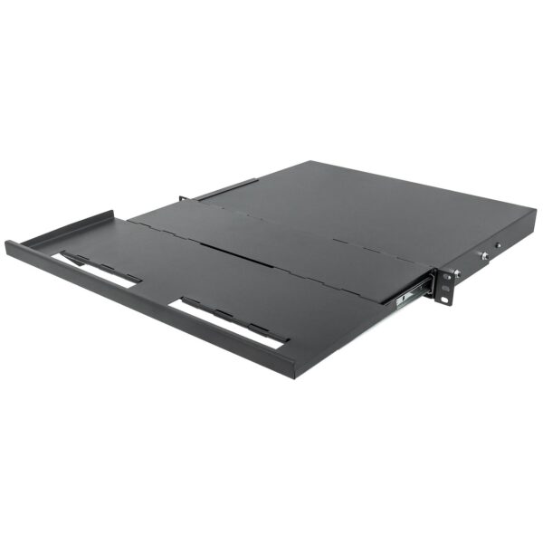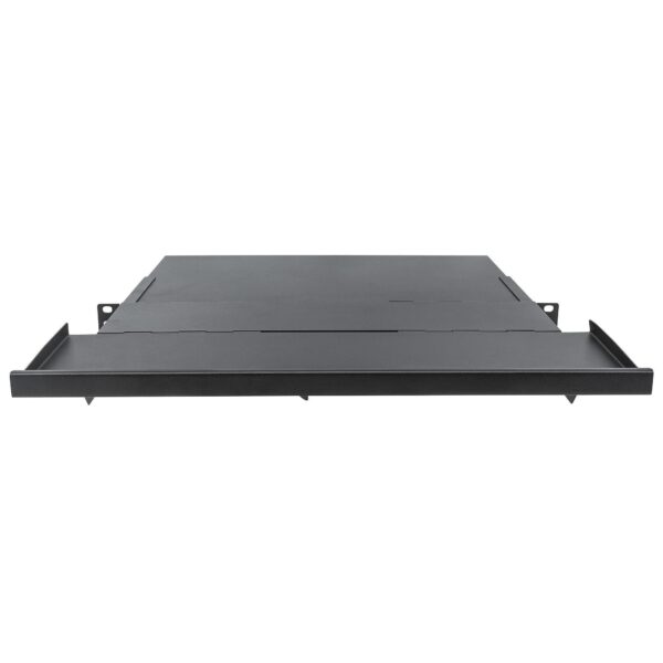 • Mensola pieghevole 19′ permette di incrementare lo spazio di lavoro a disposizione • Altezza occupata 1U• Quando è piegata permette di appoggiare una tastiera, un manuale, ecc.• Adatta alla maggior parte degli armadi di 600, 800, 1000 e 1200 mmGenerale• Mensola scorrevole ed estensibile 19’• Scivola sui binari per estendere l’area di lavoro utilizzabile • Supporta fino a 30 kg massimo• Richiede 11 cm (4,33 in.) di spazio dai binari di supporto alla porta dell’armadio • Colore: neroDimensioni• 611 (L) x 483 (P) x 60 (A) [mm]Contenuto della confezione• Mensola scorrevole 19′ con spazio di lavoro aggiuntiva• Set di quattro viti e dadi in gabbia con rondelle