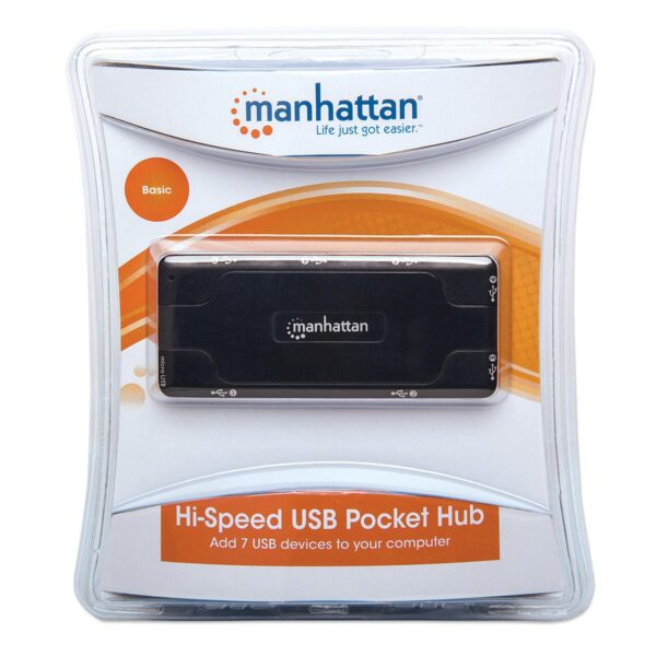 • Fornisce 7 porte USB Hi-Speed per aggiungere periferiche supplementari • Con cavo USB incorporato e a scomparsa, ideale per computer notebook con porte montate posteriormente • Alimentato tramite solamente la connessione USB eliminando la necessità di un alimentatore • Protezione da sovracorrente, removibile a caldo • Led di indicazione dello stato di accensione • Plug and Play – compatibile con tutti computer con Windows e Mac provvisti di connessione USB Standard e certificazioni• USB 2.0, USB 1.1, USB 1.0• FCC• CE• RoHS• WEEEPorte• Velocità di trasmissione: 1.5 / 12 / 480 Mbps• (1) porta upstream con cavo incorporato, standard A maschio• (1) alimentazione solo tramite porta USB Micro-B • (7) porte downstream, tipo A standard• Fino a 500 mA, tutte le porteInformazioni fisiche• Dimensioni: 90 x 38 x 14 mm• Peso: 62 g• Lunghezza del cavo: 3.8 cm• Lunghezza del cavo USB per l’alimentazione: 113 cm• Alloggiamento: plasticaSistemi richiesti:• PC o Mac equipaggiati con connessione USB• Windows XP/Vista/7/8; Mac OS 9 o superiore; Linux• Porta USB disponibileContenuto della confezione• Hi-Speed USB 2.0 Pocket Hub• Cavo USB per l’alimentazione• Manuale utente