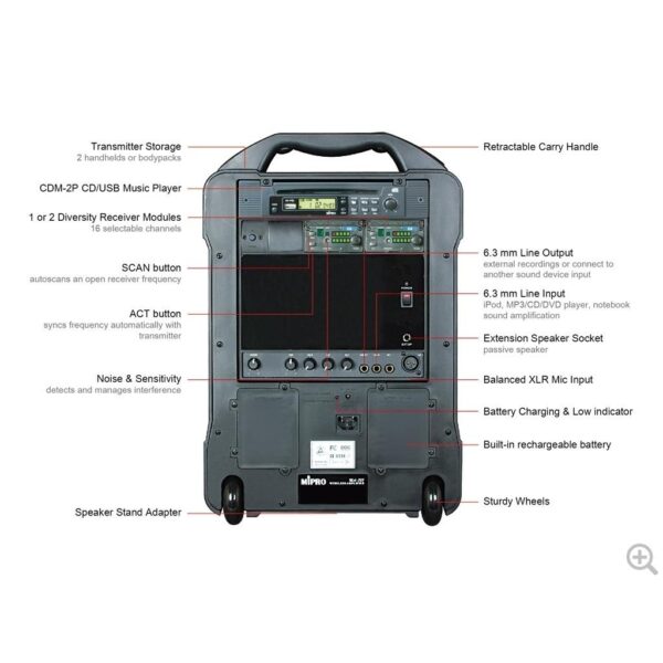Mipro MA-707PA – Amplificazione portatile da 100W a batteria e corrente