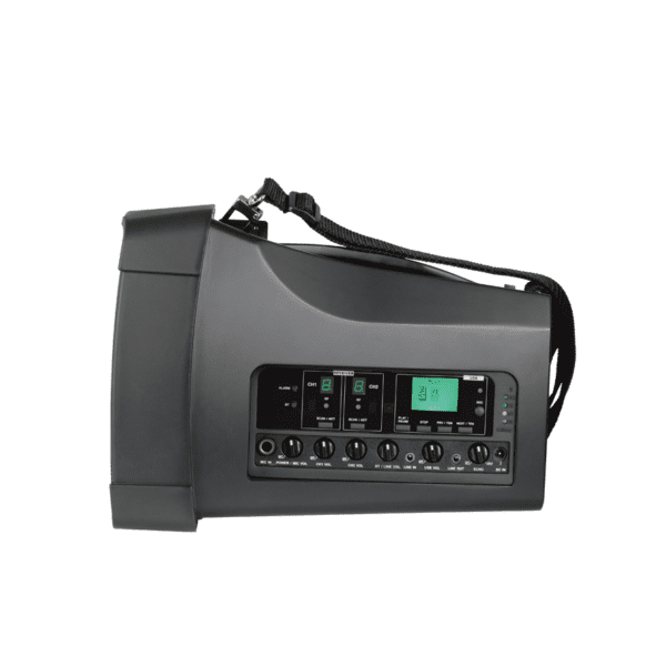 Amplificazione portatile da 60/102W – 2 RicevitorI per radiomicrofono UHF ACT 16 canali (aggiungere 2x ACT-32H) Lettore/Registratore MP3 su porta USB – Pulsante con sirena per allarme Ingressi Micro e Ausiliario – Altoparlanti a 2 vie