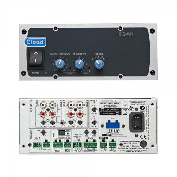 Il modello MA60T è costruito per un’eccezionale qualità del suono e la tradizionale affidabilità Cloud, nonché per l’onnipresente garanzia commerciale di 5 anni di Cloud.