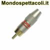 Spina coassiale RCA professionale con corpo in ottone dorato e manicotto in ottone nichelato. Indice colore nero.