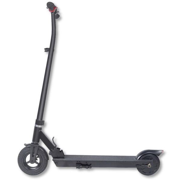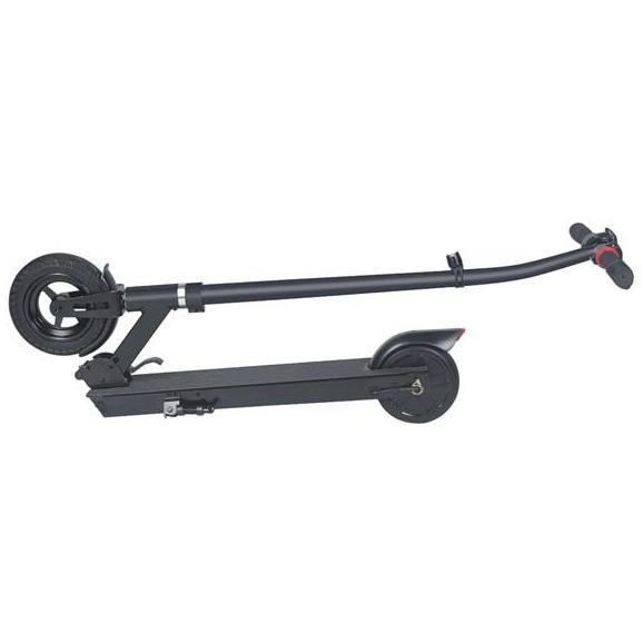 Caratteristiche• Monopattino elettrico pieghevole e portatile, assicura la massima maneggevolezza• La potente batteria da 36 V consente di raggiungere la velocità massima di 23 Km/h e un raggio di percorrenza di 8-12 Km• L’acceleratore posto sulla manopola destra permette di raggiungere la velocità desiderata• Dotato di freno elettrico e freno meccanico posto sulla ruota posteriore• La ruota anteriore ammortizzata garantisce il massimo comfort durante la guida• Dotato di LED posteriore che lo rende visibile e permette di muoversi in sicurezza• Il display sul manubrio regolabile mostra lo stato della batteria, la velocità, i chilometri percorsi e il tempo di percorrenza• L’e-scooter utilizza 3 impostazioni di velocità, che possono essere spostate attraverso il display• Grazie ad un peso di soli 10,4 Kg risulta essere molto facile da trasportareSpecifiche tecniche• Potenza del motore: 36 V / 250 Watt• Tensione di carica: 42 V CC 1,5 A• Batteria: LI ION 36V 4400mAh• Max. percorrenza: 8-12 km• Max. velocità: fino a 23 km/h• Carico massimo massimo: 100 kg• Pneumatici: gomma piena, frontale da 8′; posteriore da 5,5’• Pendenza superabile: 20°• Tempo di ricarica: 2-3 ore• Peso: 10,4 kg• Colore: neroContenuto della confezione• Monopattino elettrico• Alimentatore• Manuale• Luce posteriore a LED• Striscia di riflessione• Stand
