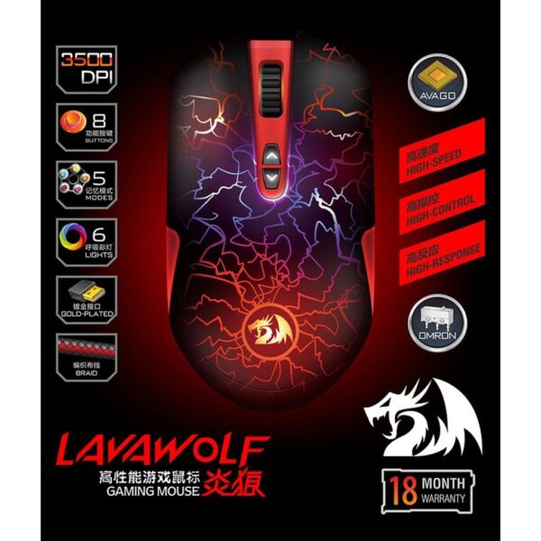 Mouse gaming ottico ergonomico da 3.500dpi. Facili da raggiungere, i tasti DPI+ e DPI- sono posti nella parte centrale del mouse e permettono quattro regolazioni di velocità: 400 / 800 / 1600 / 3500 dpi. Si possono memorizzare 5 differenti profili con 5 diversi colori per una rapida identificazione.ICMG0701 presenta un design ergonomico e lineare con superficie gommata per mantenere salda la presa durante il gioco. Il mouse Lavawolf è caratterizzato da una curva delicata che si adatta perfettamente al palmo della mano e i suoi comodi pulsanti sono posizionati in modo intelligente per una semplice attuazione. E’ dotato di un cavo lungo 1,8 m rivestito in tessuto, con connettore USB placcato oro che garantisce una maggiore durata nel tempo.Caratteristiche• 3.500dpi• 6.600 FPS• Accelerazione 20G• Sensore Avago• Microinterruttori Omron per click precisi e sicuri• Piedini in Teflon a lunga durata • 7 tasti programmabili• 4 differenti profili di velocità (da 400 a 3.500 dpi)• 5 possibili memorizzazioni contraddistinte da 5 colori:- Giallo- Verde- Blu- Viola- Rosso• Illuminazione a 6 diversi colori• 2 tasti laterali programmabili• 1 tasto di accensione• Cavo USB high speed da 1.8m• Diametro cavo: 3mm• Connettore USB placcato oro• Durata tasti: 5 milioni di click• Durata piegatura del cavo: 10.000 volte• Massima forza di trazione: 10kg• Anello magnetico anti-interferenza• Comodo design ergonomico• Software multifunzioneDimensioni• Lunghezza 117 mm• Larghezza 63 mm• Altezza 37 mm• Peso: 130 gCertificazioni• CE• FCC• RoHS• RAEEContenuto della confezione• Mouse Lavawolf Bianco• CD driver• Manuale d’istruzioni