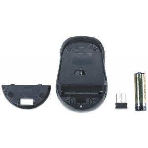 • Tecnologia wireless RF 2,4 GHz con una distanza operativa fino a 10 m (33 piedi).• Il pulsante di comando nella parte superiore consente di modificare immediatamente la risoluzione da 1000 a 2000 dpi.• La gestione automatica dell’alimentazione consente di prolungare la durata della batteria.• Lo spazio di archiviazione sulla scheda protegge il ricevitore USB da perdite e danni.• La base a basso attrito facilita lo scivolamento sulla superficie di lavoro.• Installazione Plug and Play – Compatibile con Windows e Mac.Caratteristiche• Risoluzione regolabile a 1000/1500/2000 dpi• Mouse con tasto centrale, a destra e a sinistra e rotellina di scorrimento per regolare la risoluzione• Modalità di risparmio energetico/spegnimento automatico• Mouse: 9,6 × 6,4 × 3,7 cm; 50 g• Micro ricevitore USB: 2,4 GHz (2,2 x 0,5 x 1,4 cm)• Compatibile con Windows XP/Vista/7/8/10 e Mac OS 10.0 e versioni successiveContenuto della confezione:• Mouse ottico wireless dalle elevate prestazioni con micro ricevitore USB• Batteria AA• Guida di installazione rapida
