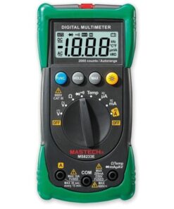 • Multimetro digitale compatto di facile utilizzo dotato delle più comuni funzioni di test• Display digitale 2000 counts • Test di tensione AC/DC, corrente DC, resistenza• Test transistor, diodo e di continuità con cicalino• Data hold (memorizzazione dato)• Display retro-illuminato• Conforme agli standard di sicurezza CAT II 600V (uso per impianti elettrici domestici o residenziali)• Corrisponde al codice Mastech MAS830LH Specifiche• Funzioni, intervallo delle misure e tolleranza • Voltaggio DC : 200mV/2V/20V/200V±(0.5% +3), 600V±(0.8% +5)• Voltaggio AC : 200V/600V±(1.2% +10)• Corrente DC : 20µA/200µA/2mA/20mA/200mA±(1.0% +3), 10A ±(3.0% +10)• Resistenza: 200Ω/2kΩ/20kΩ/200kΩ±(0.8% +2), 2MΩ±(1.0% +5)Specifiche• Display: 2000 counts• Diodo: 2.7V• Cicalino continuità: