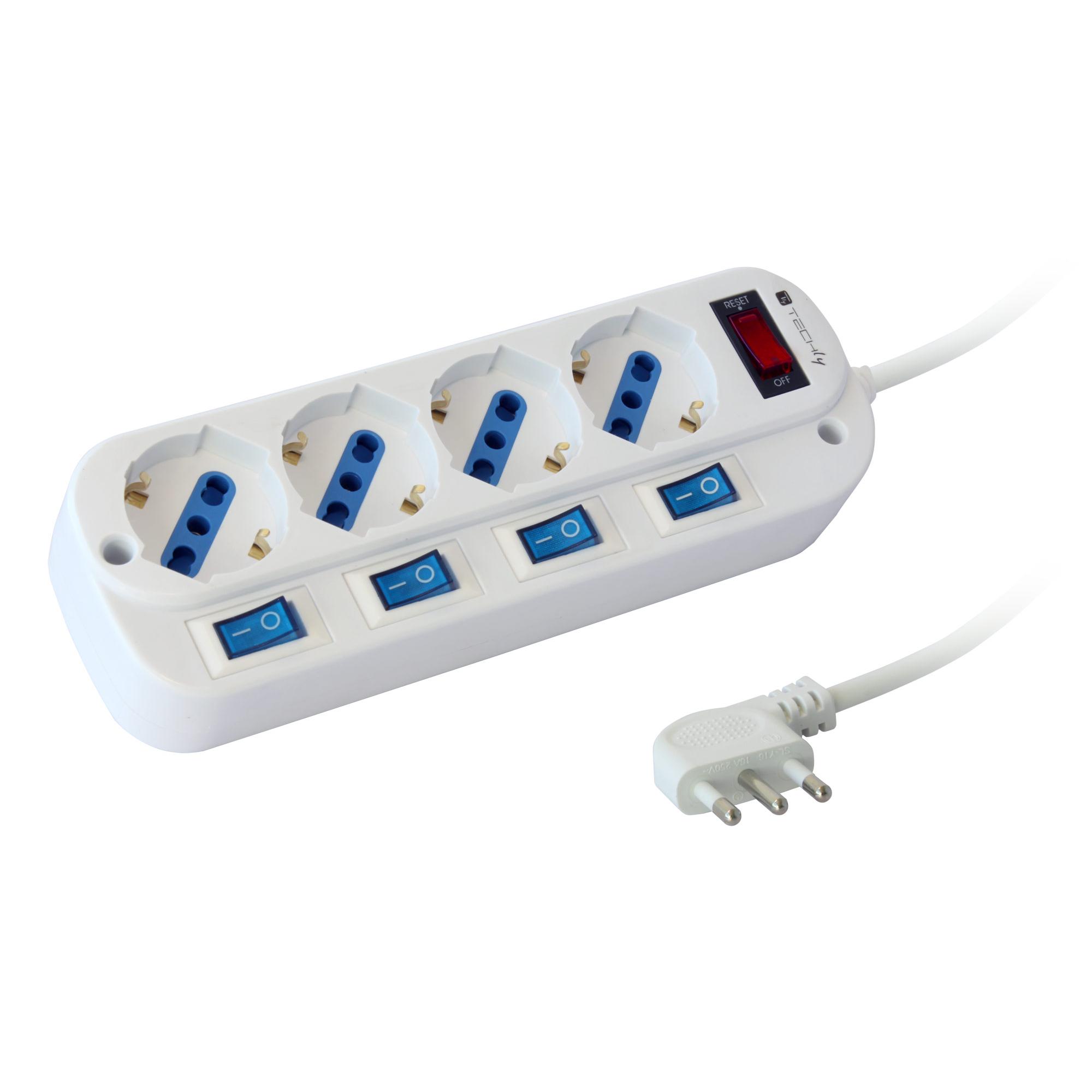 Multipresa 4 Posti Bipasso con Interruttori indipendenti e protezione da sovraccarico