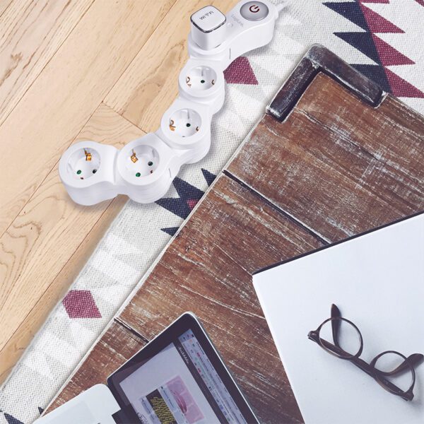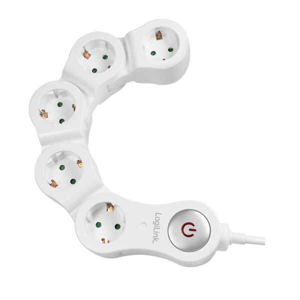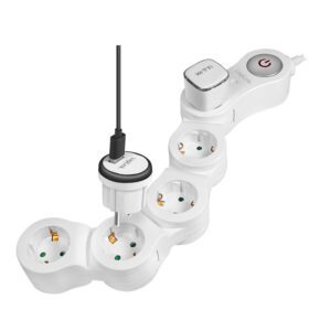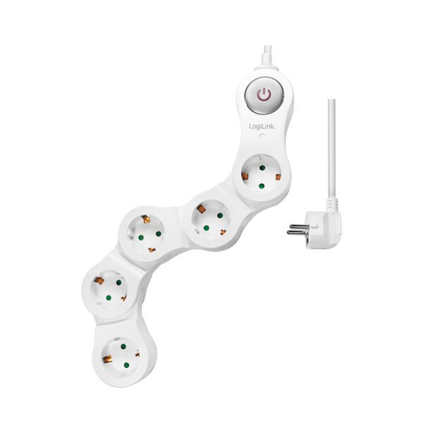 Le normali prese di corrente fisse a volte non si adattano all angolo esistente. Ora ottieni la massima flessibilità con la presa a 5 vie che si può regolare come desideri: i cinque elementi della presa sono collegati con giunti per posizionare ciascun elemento individualmente. Non è un problema posizionare la presa a forma di zigzag o a semicerchio attorno ai mobili o semplicemente a ridosso di un angolo. La striscia è quindi salvaspazio rispetto alle normali prese di corrente; è munita di un pratico interruttore on/off e una protezione per bambini per ogni presa.