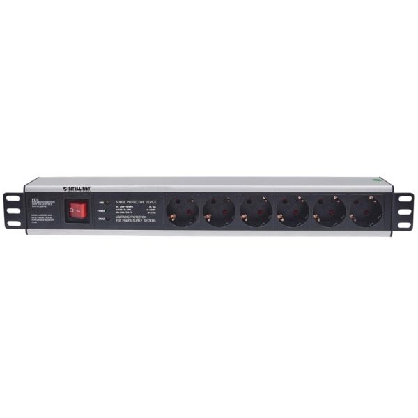 • Multipresa da rack 19’• Uscite: 6 vie• Alimentazione: singolo ingresso all’estremità sinistra• Installazione frontale• Cavo con spina IEC60884• Funzioni di controllo: con interruttore• Funzioni di protezione: protezione da sovratensione• Materiale e colore di costruzione: alluminio nero• Umidità di esercizio: 10 – 90%• Installabile a rack 1.5U• Standard presa/uscita: IEC60884• Portata elettrica: 250V AC• Massima corrente di carico: 16A• Cavo di alimentazione standard da 3m• Dimensioni: 482.6 x 44.4 x 62 mm (L x P x A)