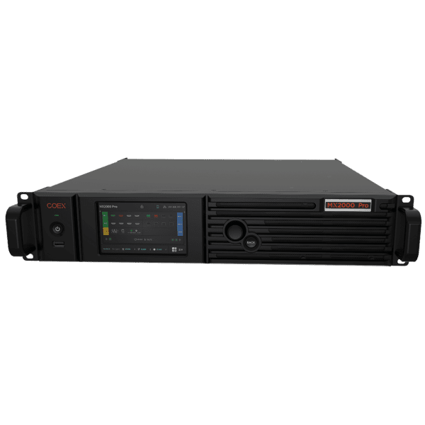 L’MX2000 Pro può essere controllato tramite un touch screen da 5” in combinazione con le manopole di controllo, tramite il controllo Ethernet a cascata e il software VMP. Supporta anche i protocolli SNMP e Art-Net. La scheda di controllo è inclusa, mentre le schede di ingresso e di uscita devono essere acquistate separatamente.