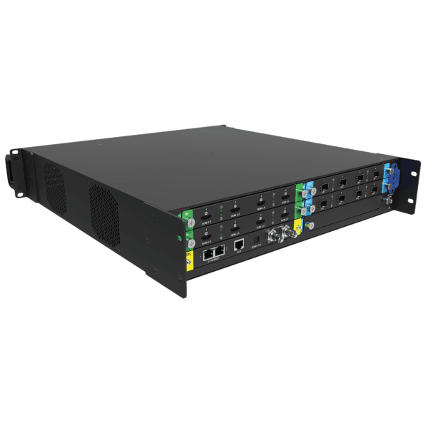 Il Novastar MX2000 Pro è un controller professionale per schermi LED 8K, ideale per servizi di noleggio di grandi schermi, studi xR/VP, produzioni televisive, eventi sportivi (e-sport), grandi installazioni fisse, ecc. Supporta una profondità di colore a 12 bit reali, HDR, frame rate fino a 360 Hz, latenza zero, scalabilità in tempo reale su più schermi e offre un controllo accurato della luminosità, un’ottima qualità del colore e delle immagini. Sono disponibili diverse schede di ingresso e uscita che permettono agli utenti di personalizzare il processore per soddisfare le esigenze di qualsiasi progetto.