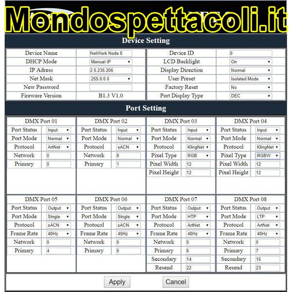 8 canali nodo Artnet/Klingnet, XLR a 3poli
