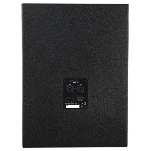 Il DAP NRG-12S è un subwoofer passivo classificato al picco di 1200 watt (RMS continuo di 300 watt). Utilizza un woofer da 12” con bobina voce da 2,5” per offrire bassi fino a 50 hertz (-6 dB). Con una sensibilità di 94 dB/W/m, riproduce comodamente fino a 120 dB continui e fino a 132 dB di picco.