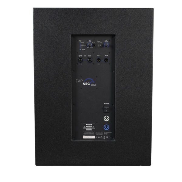 Il DAP NRG-18SA è un subwoofer attivo con una potenza di picco di 1000 watt (RMS continuo di 500 watt). Utilizza un woofer da 18” con bobina voce da 3” doppia per offrire bassi fino a 45 hertz (-6 dB). È sufficientemente potente da produrre comodamente fino a 122 dB. È dotato di un DSP interno con 4 utili modalità per l’integrazione con un diffusore NRG a gamma completa o una frequenza di crossover personalizzabile. L’amplificatore di classe D interno è dotato di un alimentatore a modalità commutata per ridurre il peso e aumentare il livello di efficienza. Il DSP interno fornisce anche protezione contro sovraccarico, corto circuito e protezione termica. Due jack combo XLR accettano il segnale audio, che viene collegato in loop alle due uscite XLR per pilotare un diffusore a gamma completa o un subwoofer aggiuntivo.