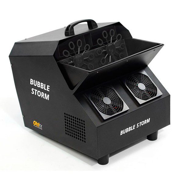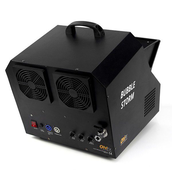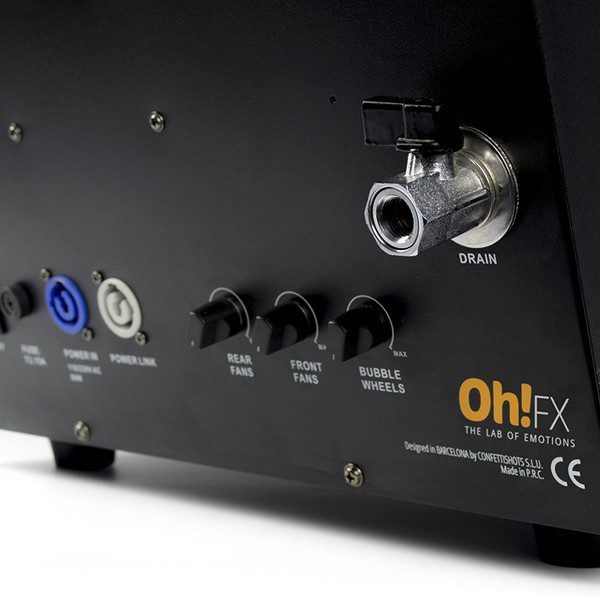 Macchina delle Bolle con Ventole anteriori e posteriori regolabili in 4 velocità diverse. Quantità di bolle regolabile, rubinetto di scarico e connessioni Powercon. NB: Macchina fornita senza cavo di alimentazione.